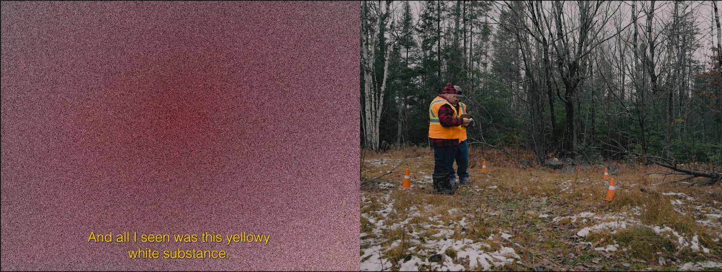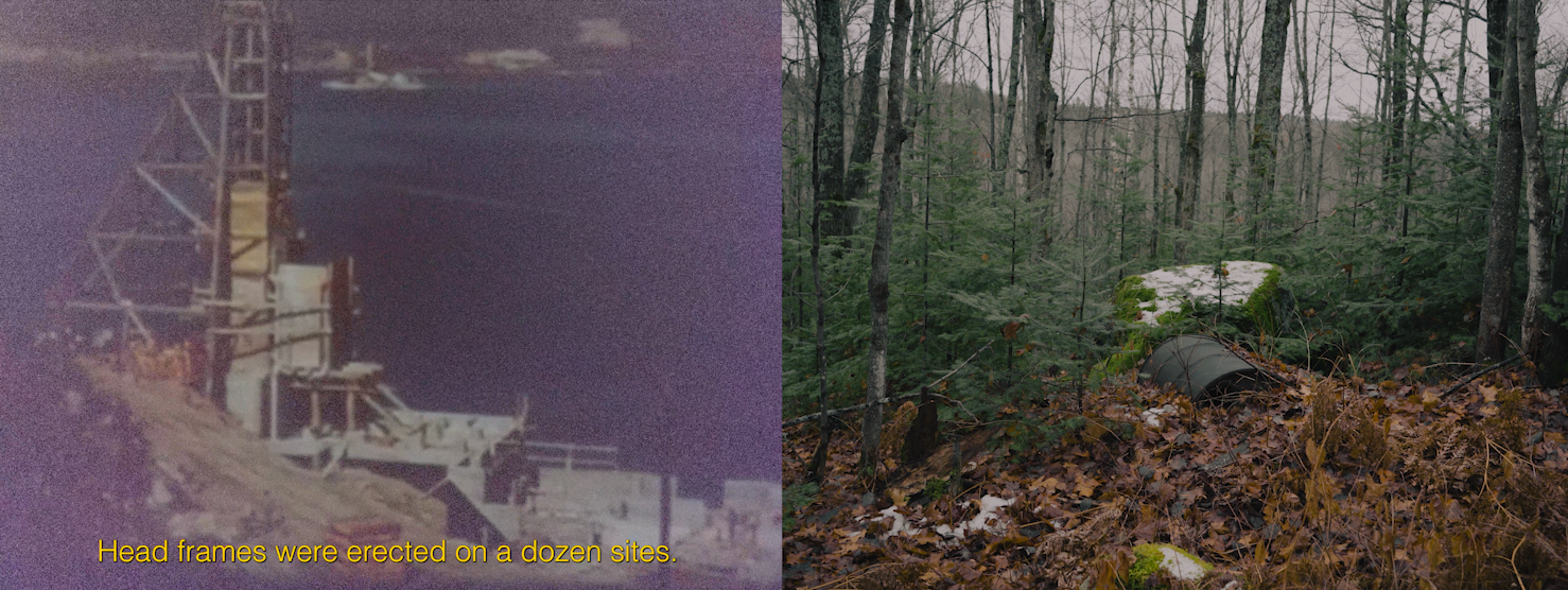 A two channel video piece investigating the meeting points of colonial industrialism, propaganda, government intervention, and the lasting legacy of nuclearism in the context of settler Canada.