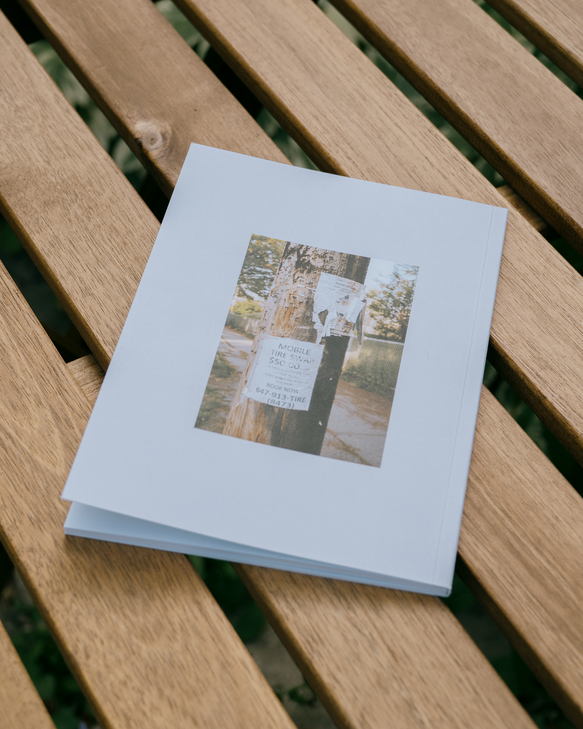 Over a summer, I set out to document the flyers, ads, and art that were posted, glued, and stapled to the telephone poles in my neighbourhood in an attempt to see if it could produce a vague mosaic of the community around me. These photos now manifest in a collection of twenty six photographs presented in this limited run zine. There are twenty six editions, and they are $26 CAD per copy.